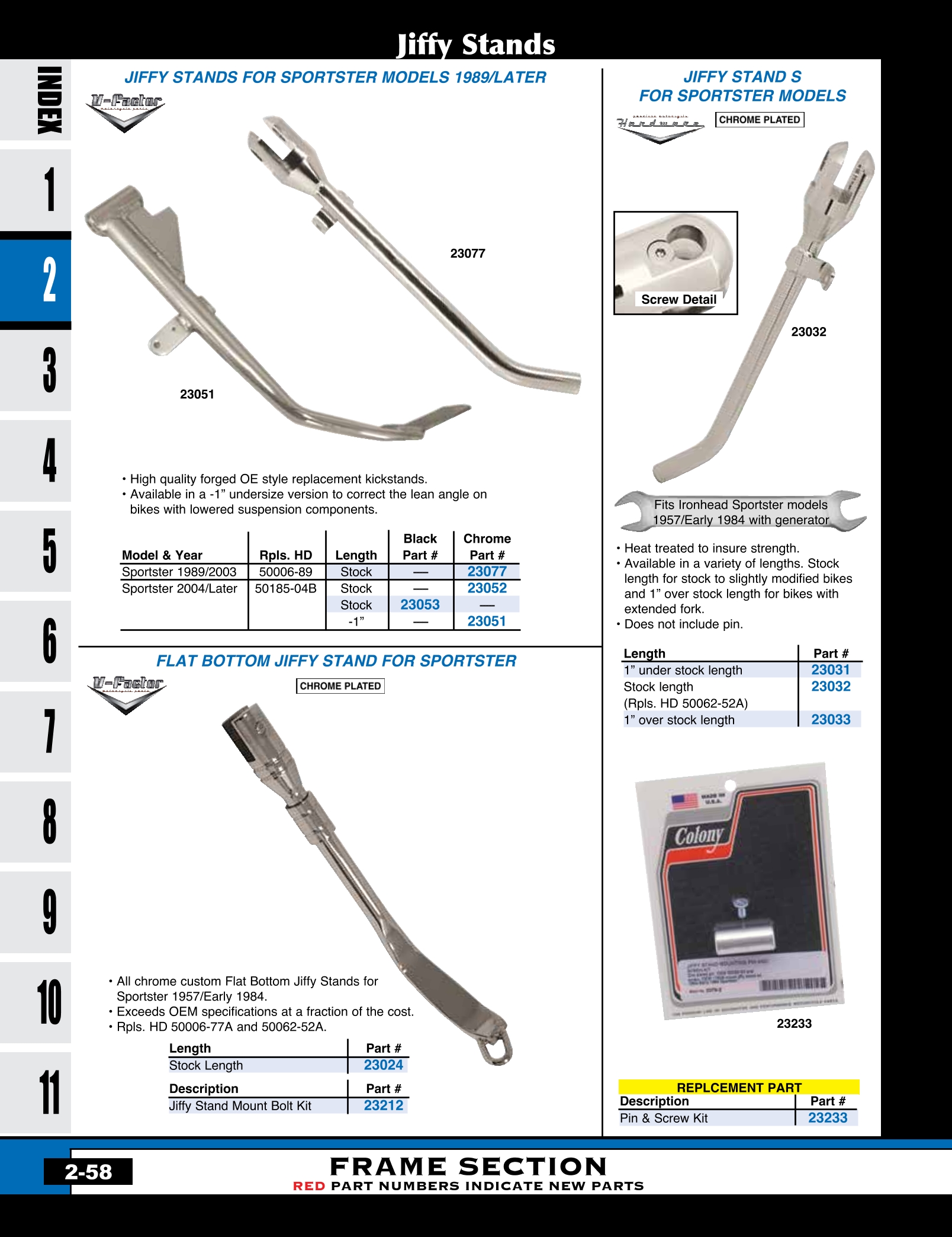 | MU-23032 | JIFFY STAND STOCK LG ALL SPT MODELS 1957/EARLY 1984 CHROMED..REPLACES HD 50062-52A | EACH | 68.10 |