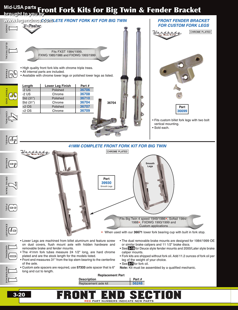 | MU-39982 | FRONT FORK KIT,MISSILE STYLE FXST 84/99,FXWG 85/86,FXDWG 93 /99,+14" OS DUAL DISC 41MM,CP | 800.08 | 675.00 |