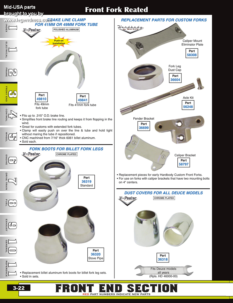 | MU-36699 | FRONT FENDER BRACKET HARDBODY CUSTOM FORK LEGS SEE CATALOG FOR FITMENT | 26.59 | 22.36 |