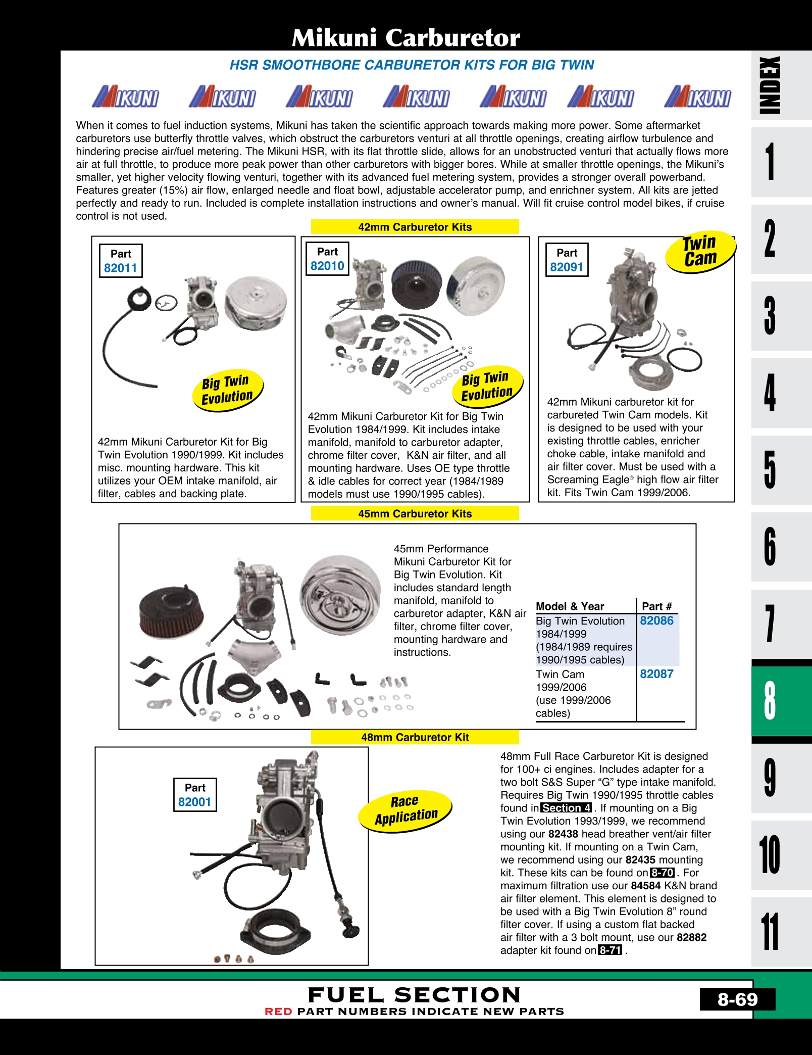 | MU-82011 | CARBURETOR,MIKUNI 42MM BIG TWIN EVO 1990/LATER UW/OEM MANIFOLD,AIR FILTER & CABLES | KIT | 432.25 |