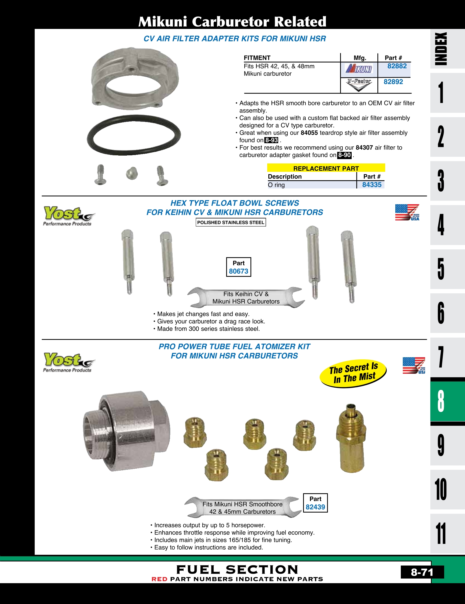 | MU-82892 | AIR FILTER ADAPTER KIT HSR42/45/48 UW/OEM & CUSTOM CV TYPE AIR FILTER ASY | KIT | 19.05 |