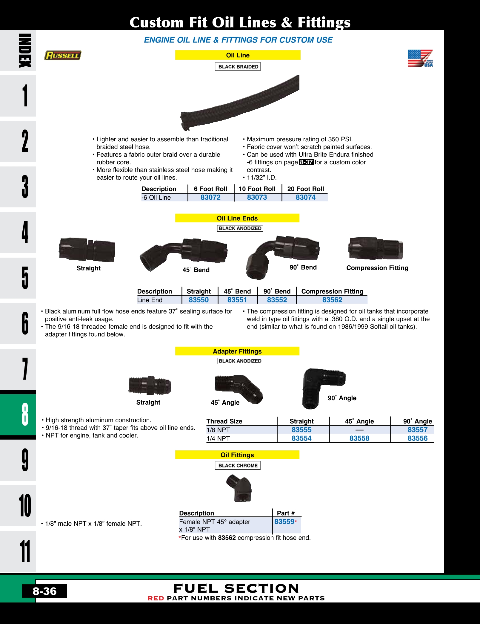 | MU-83562 | OIL HOSE END -6 COMPRESSION FITS 3/8"OD FITTINGS & NIPPLES BLACK ANODIZED MFG#R70133B | EACH | 21.06 |