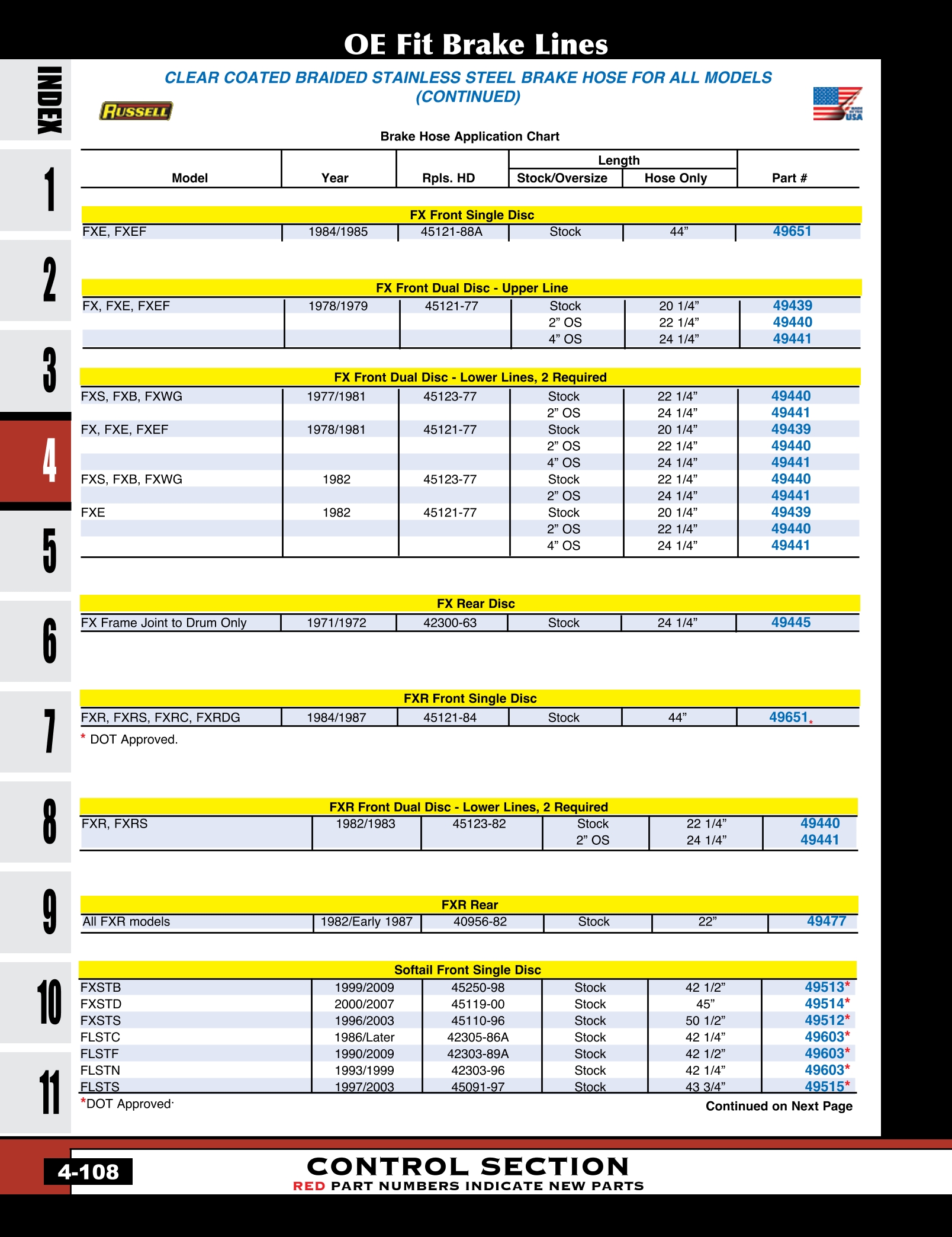 | MU-49477 | CLR COAT SS BRK HOSE RR 22" LG FXR MODELS 1982/EARLY 1987 RPLS 40956-82 RUSSELL R08813S | ASY | 28.95 |