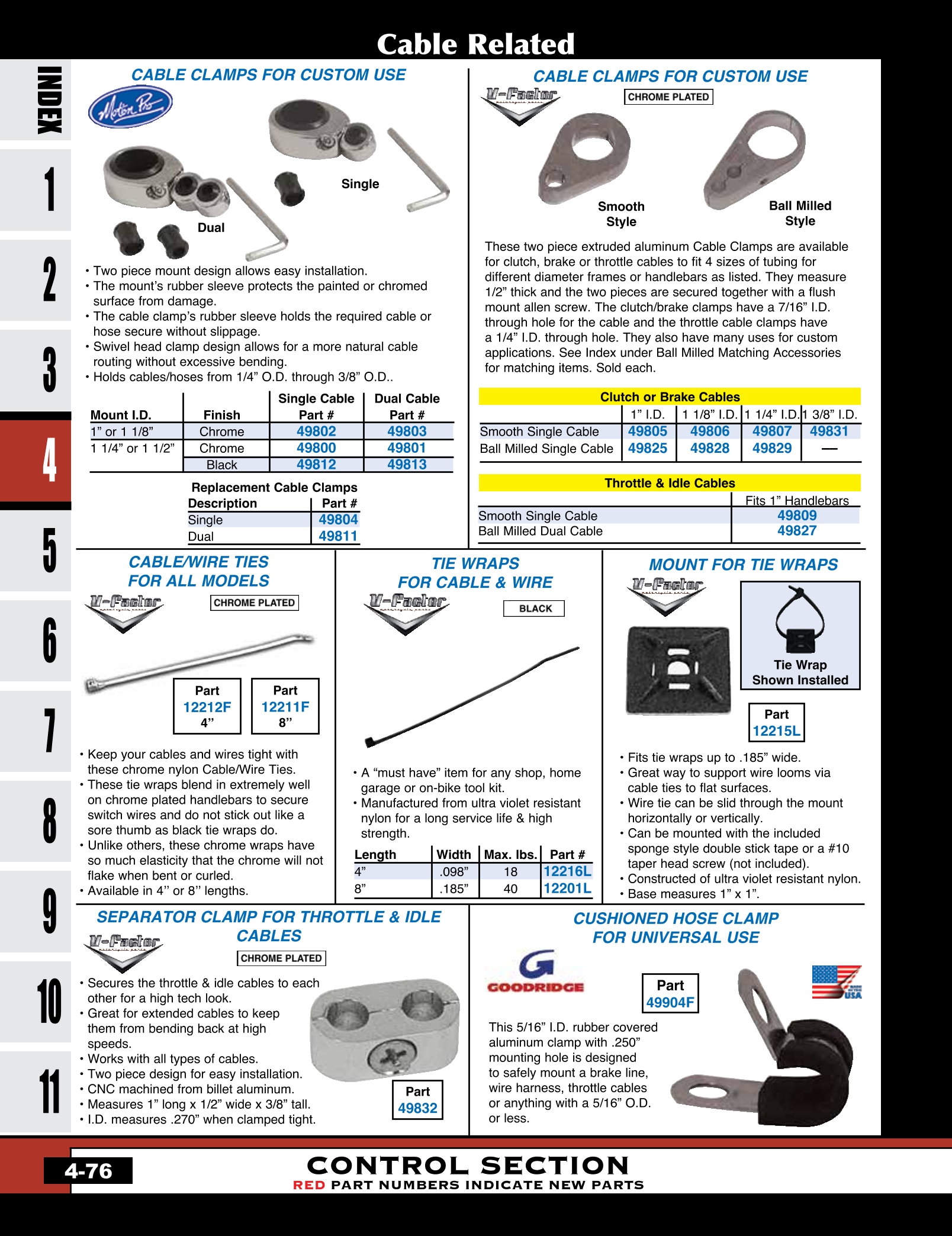| MU-49827 | TH/IDLE CABLE CLP BALL MILLED DUAL CABLE 1" HANDLEBARS DIE CAST CHROME PLATED | EACH | 7.85 |
