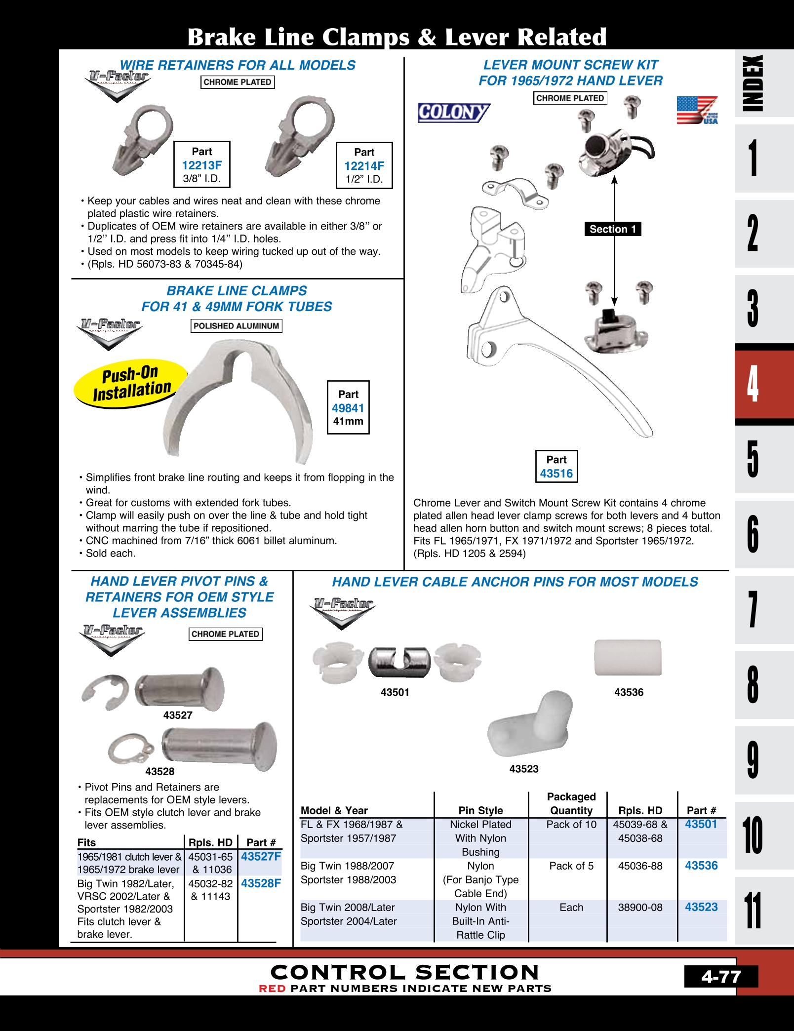 | MU-44500 | CLUTCH CABLE MOUNT EO STYLE CP FL 65/EARLY 79,FX 71/EARLY 79 REPLACES HD 62576-65A | EACH | 15.75 |
