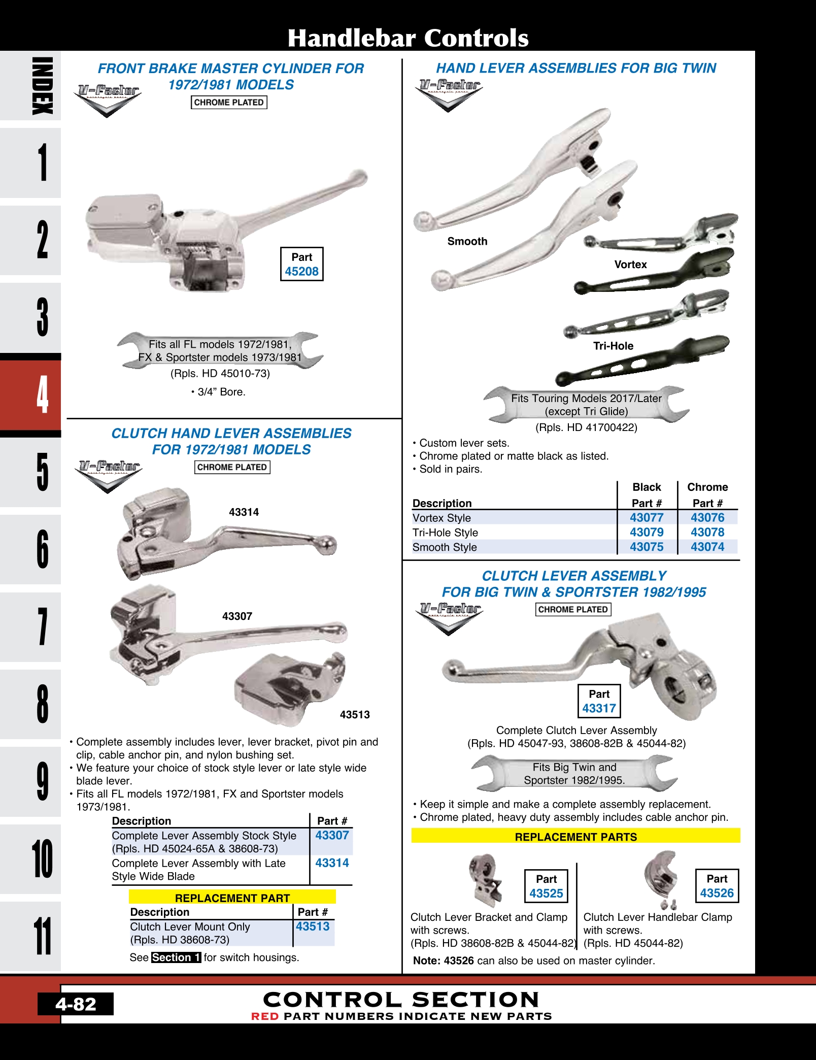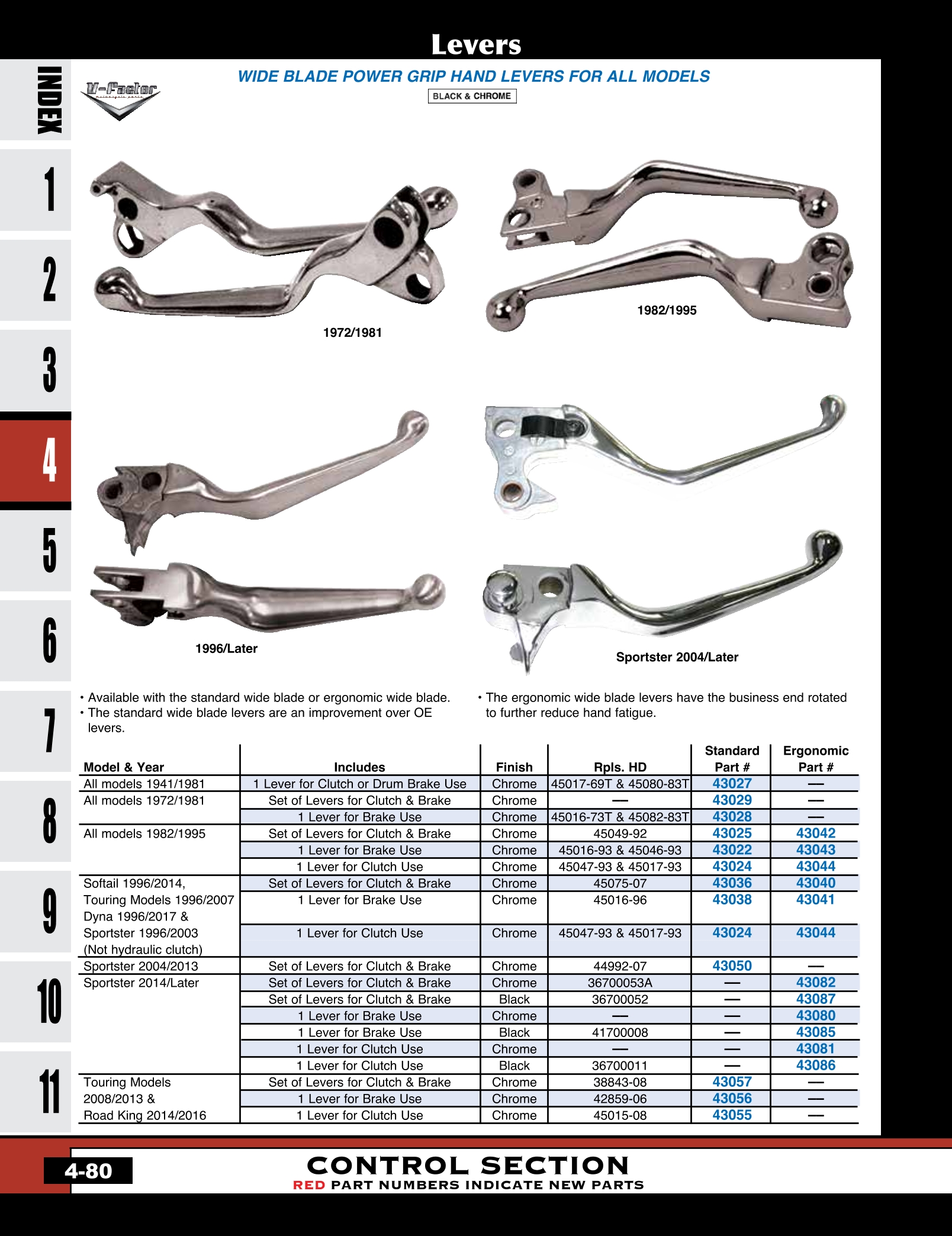 | MU-43025 | HAND LEVERS,CL&BRK WIDE BLADE POWER GRIP ALL MODELS 1982/95 CHROME REPLACES HD 45049-92 | SET | 25.95 |