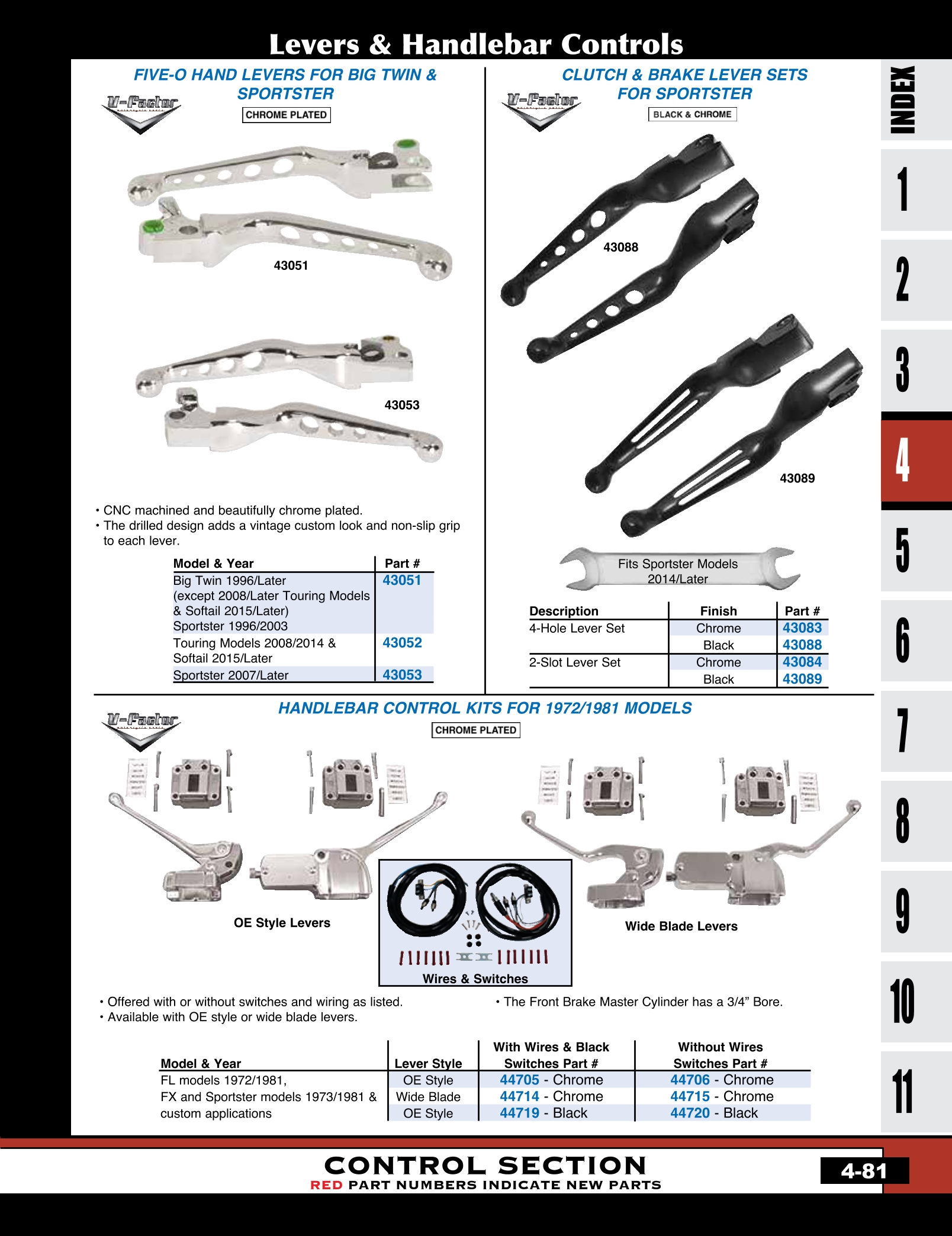 | MU-43083 | BRAKE/CLUTCH LEVER SET 4-HOLE FITS XL 2014/L* CHROME | SET | 39.35 |