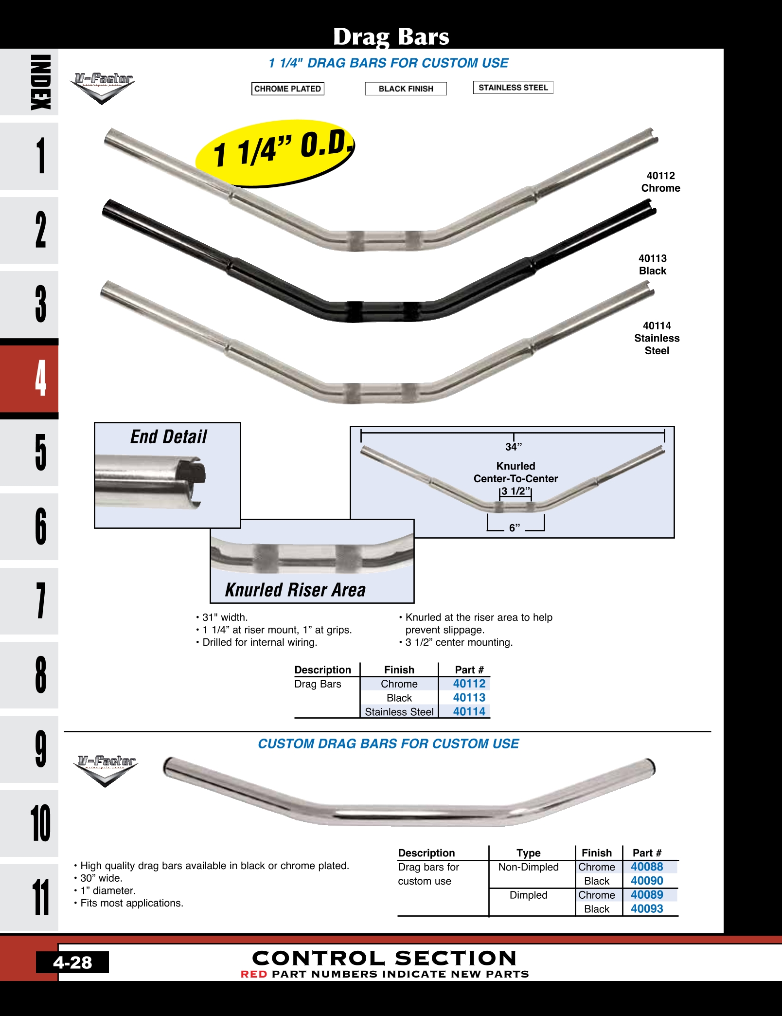 | MU-40093 | DRAG STYLE HANDLEBAR,BLACK 1982/LATER*,30" WIDE,1" DIA DIMPLED | EACH | 18.90 |