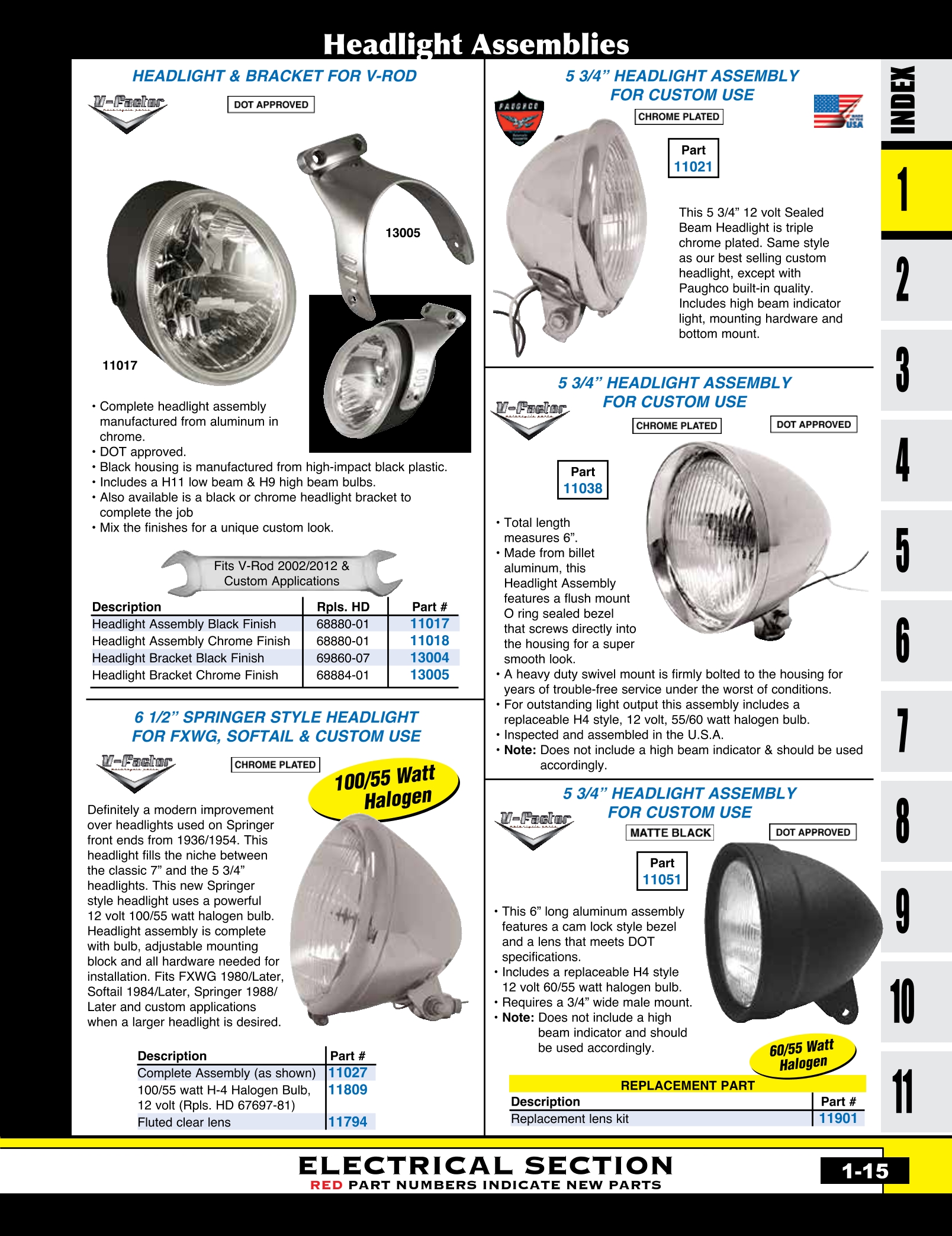 | MU-11017 | REPLACEMENT HEADLIGHT,BLACK V-ROD 02/L* & CUSTOM APP RPLS HD 68880-01 | EACH | $ 189.95 |