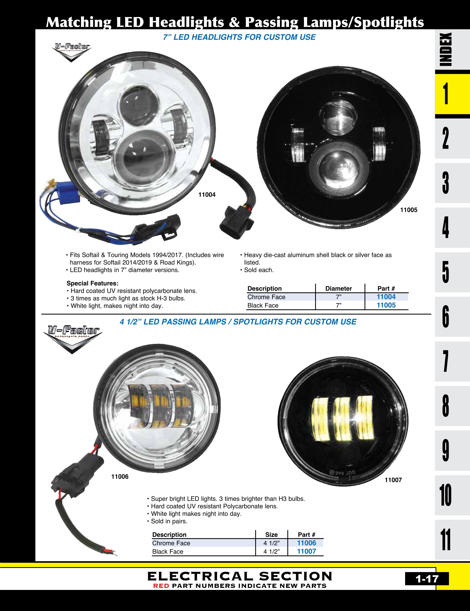| MU-11004 | LED 7"HEADLITE CHROME FACE. SOFTAIL / TOURING | EACH | $ 98.50 |