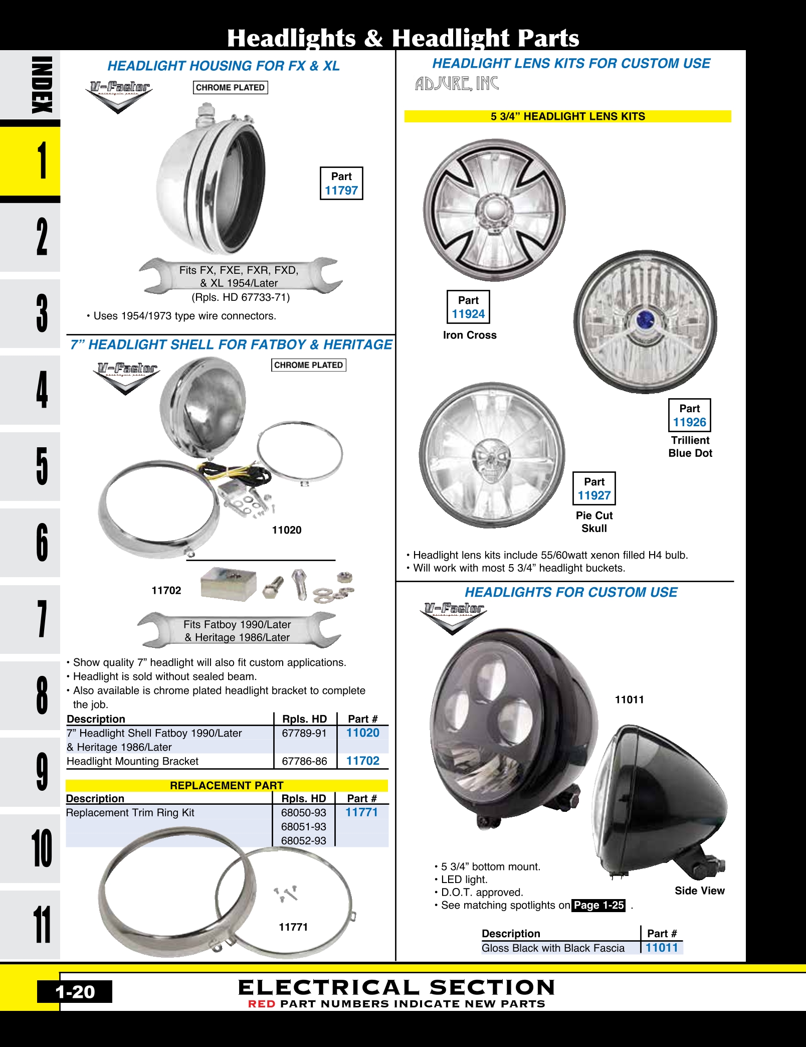 | MU-11020 | HEADLIGHT 7",CHROME PLATED FATBOY & HERITAGE 1986/LATER* RPLS HD #67789-91 | EACH | $ 89.95 |