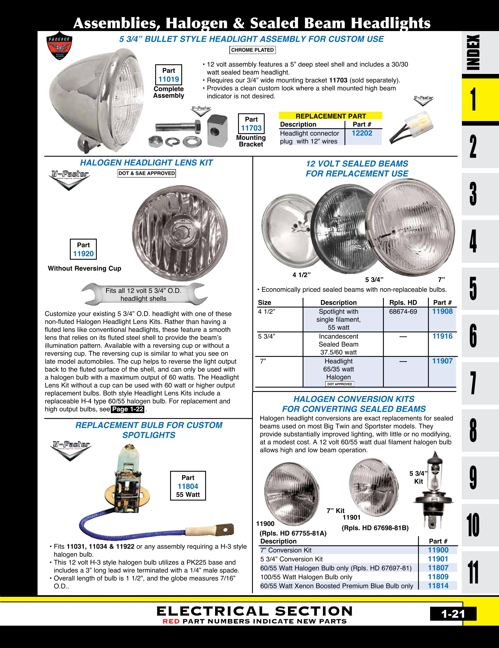 | MU-11016 | HEADLIGHT,5-3/4" CUSTOM HI-LOW HALOGEN SEALED BEAM 60/55 WATTS BOTTOM MOUNT CP | ASY | $ 57.60 |
