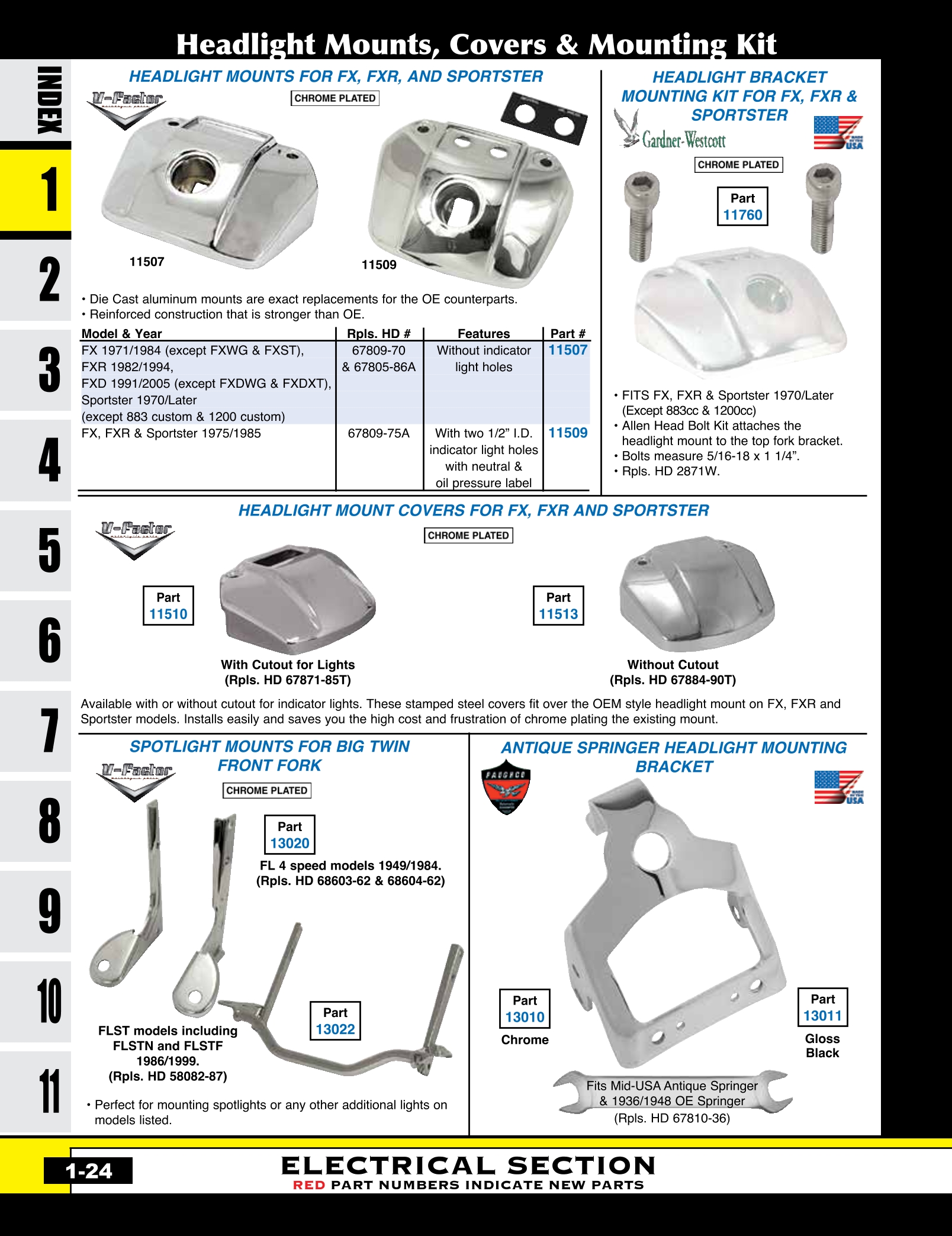 | MU-11027 | HEADLIGHT,6-1/2"SPRINGER STYLE FXWG 80/L ST 84/L* & CUSTOM 12V W/H-4 BULB BOTTOM MT .. CP | ASY | $ 75.95 |