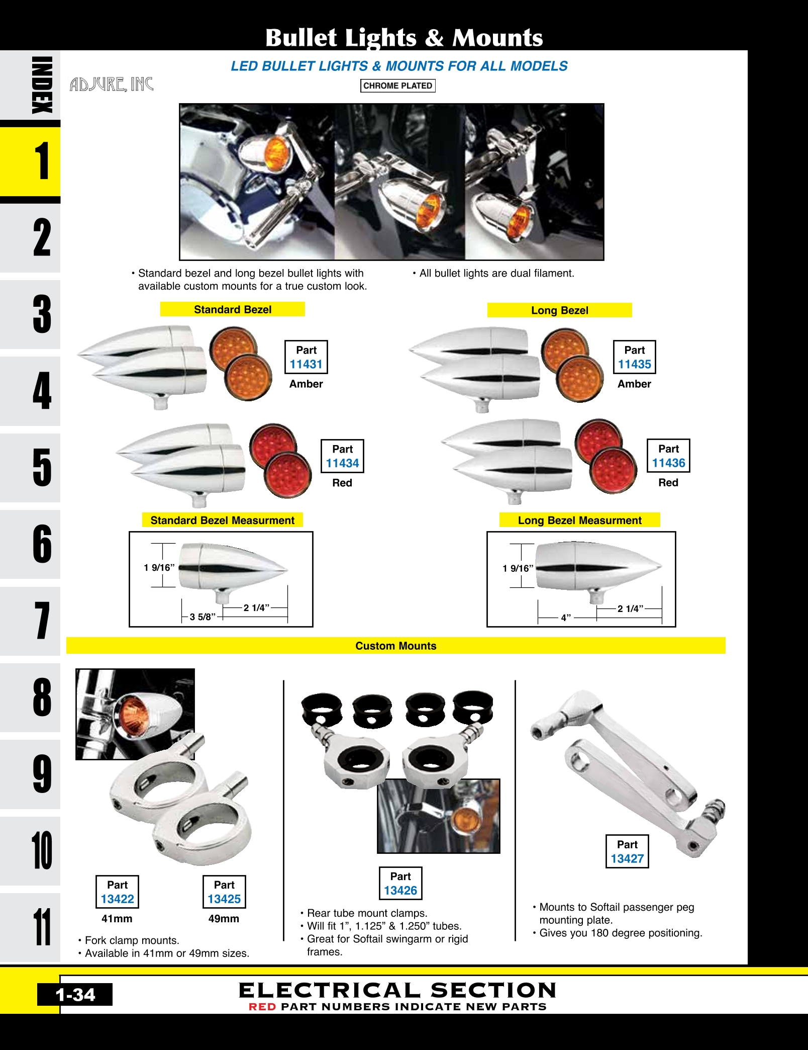| MU-11411 | BULLET MARKER LIGHT AMBER LENS DUAL FILAMENT 12 VOLT CHROME PLATED | EACH | $ 8.50 |