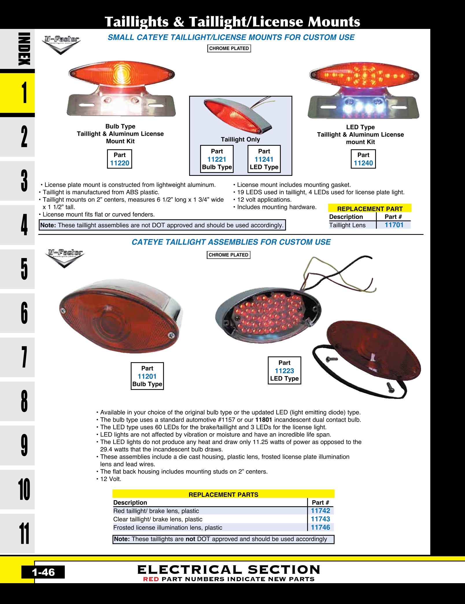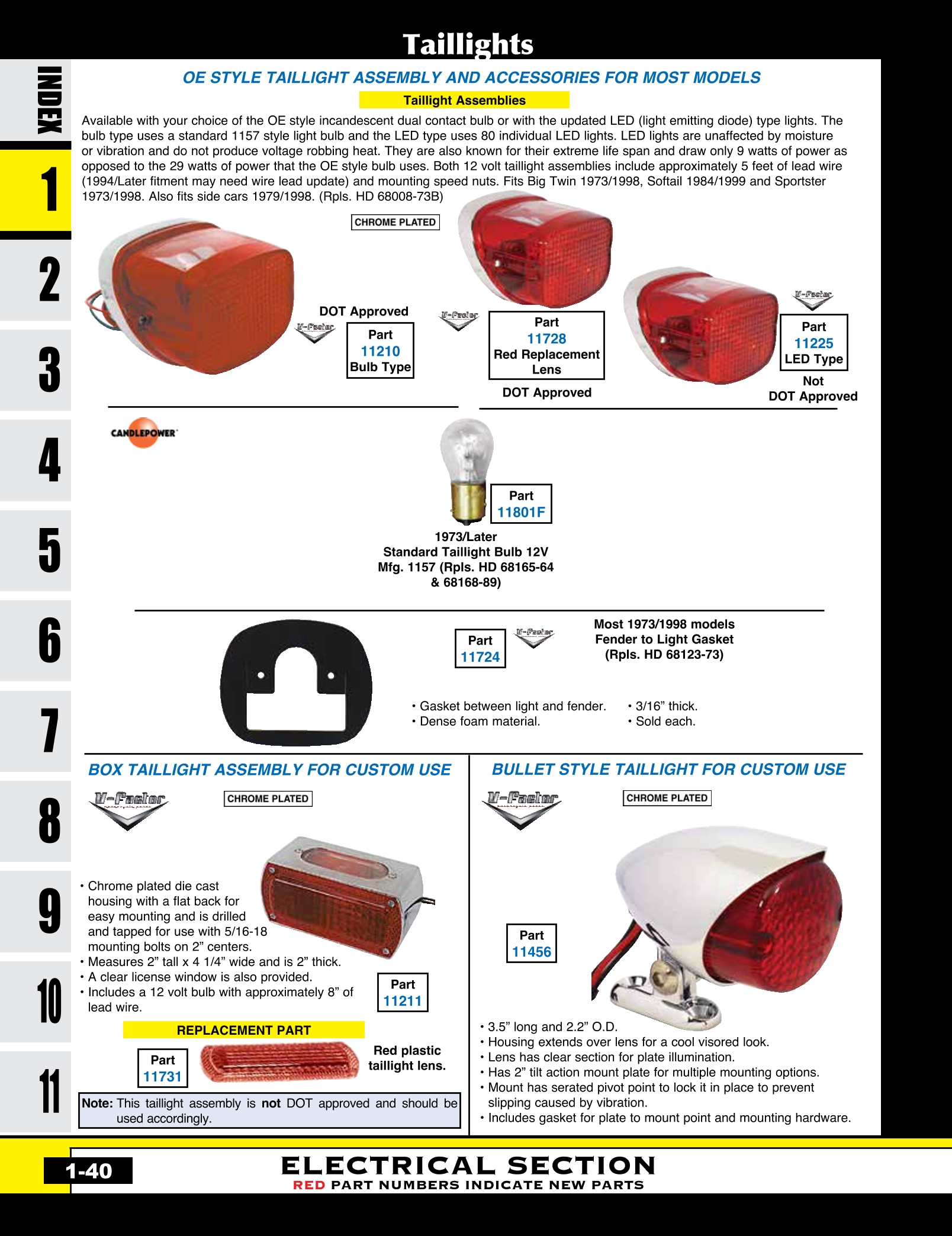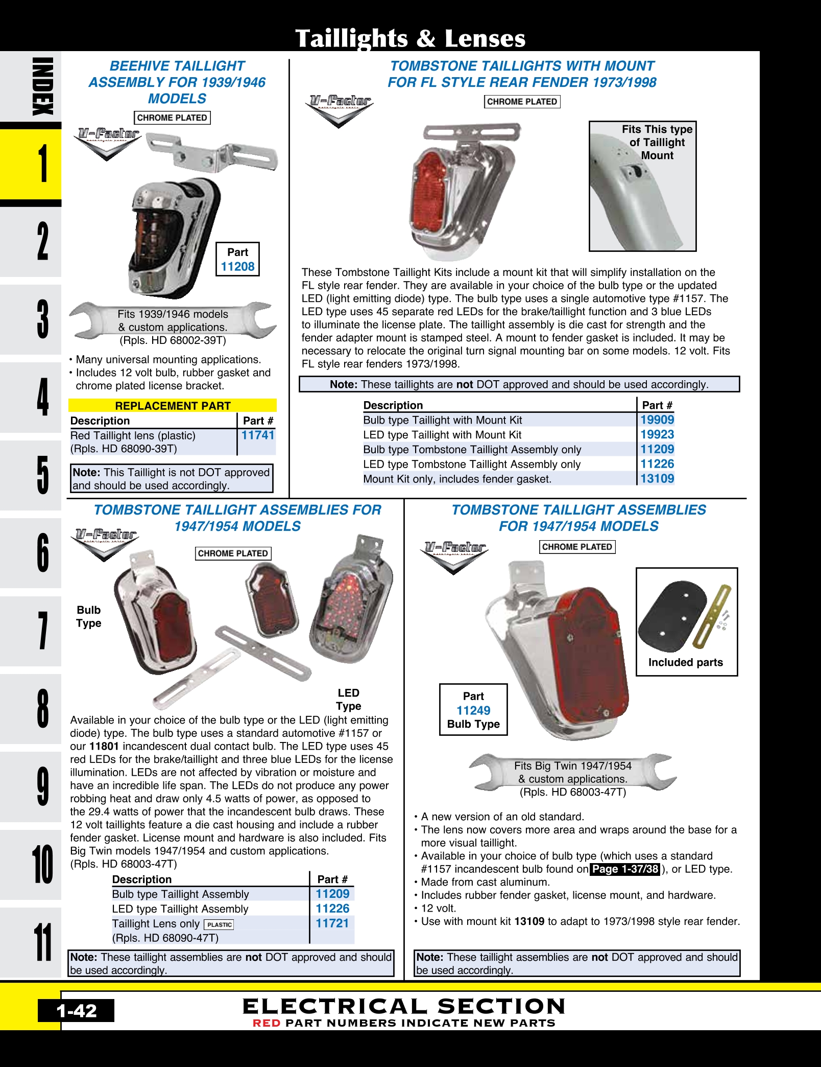| MU-11249 | TOMBSTONE TAILLIGHT W/12V BULB FITS BT 47/54 & CUSTOM FENDERS FEATURES WRAP-AROUND LENS,CP | ASY | $ 43.90 |