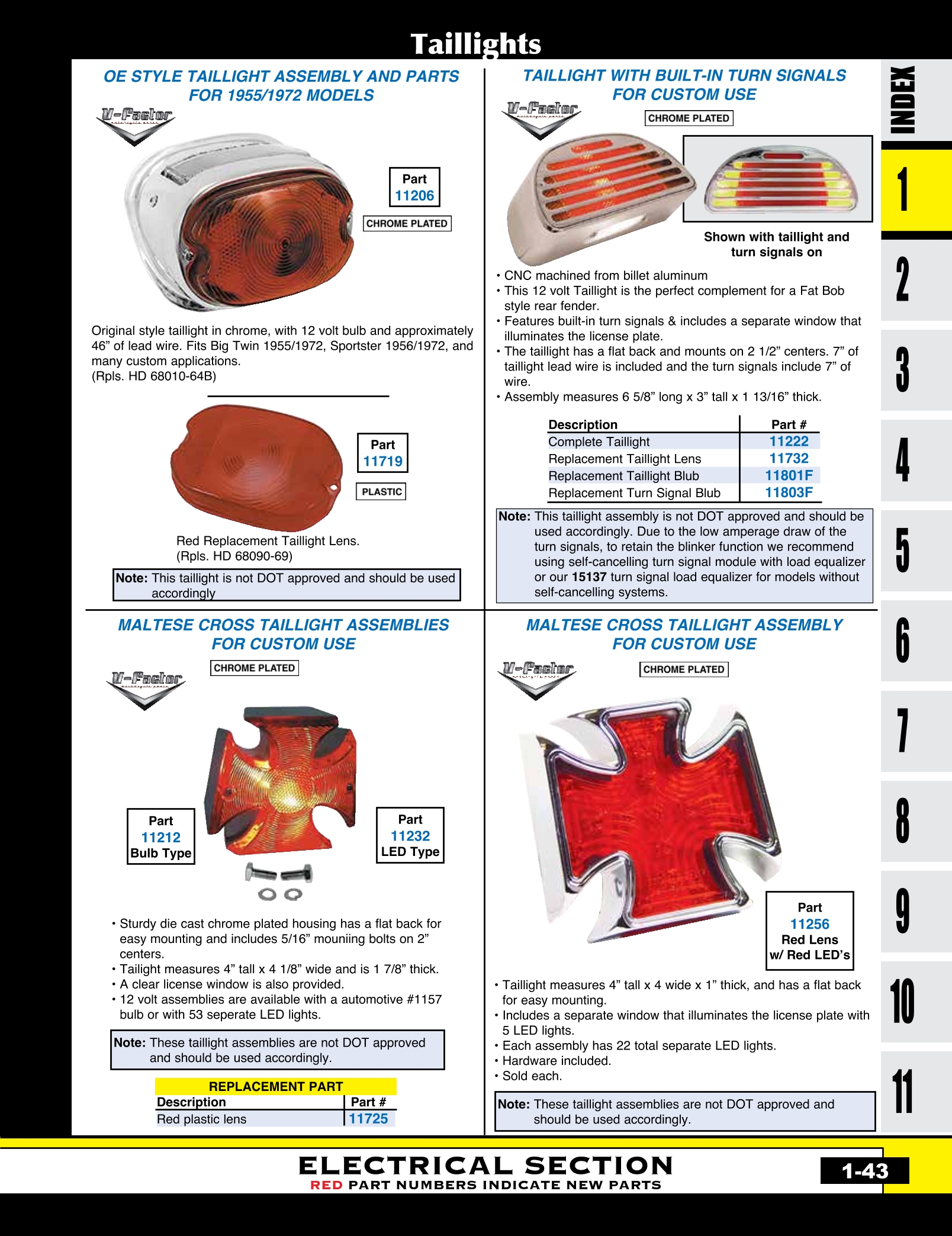 | MU-11732 | TAILLIGHT LENS RED & AMBER FITS #11222 CUSTOM TAILLIGHT AMBER TURN SIGNALS, RED CENTER | EACH | $ 8.45 |