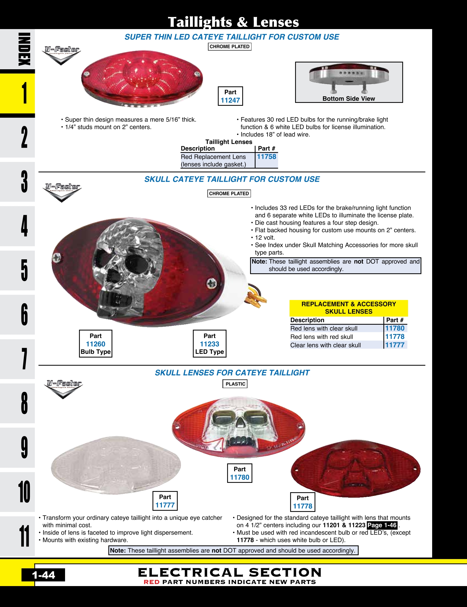 | MU-11260 | SKULL CATEYE TAILLIGHT RED LENS/CLEAR SKULL CHROME | EACH | $ 37.55 |