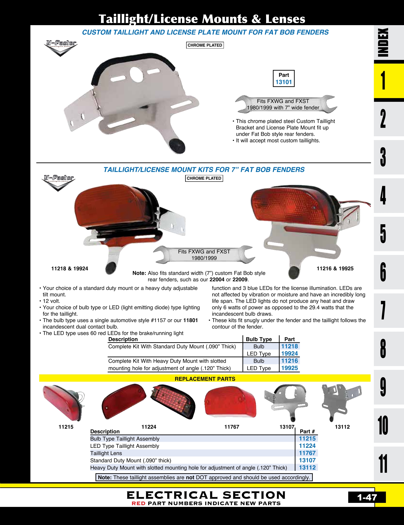 | MU-11216 | TAILLIGHT/LIC MT 12V BULB TYPE FXWG,FXST 1980/1999 & CUS 7" FAT BOB FDR HEAVY DUTY MT CP | KIT | $ 62.00 |