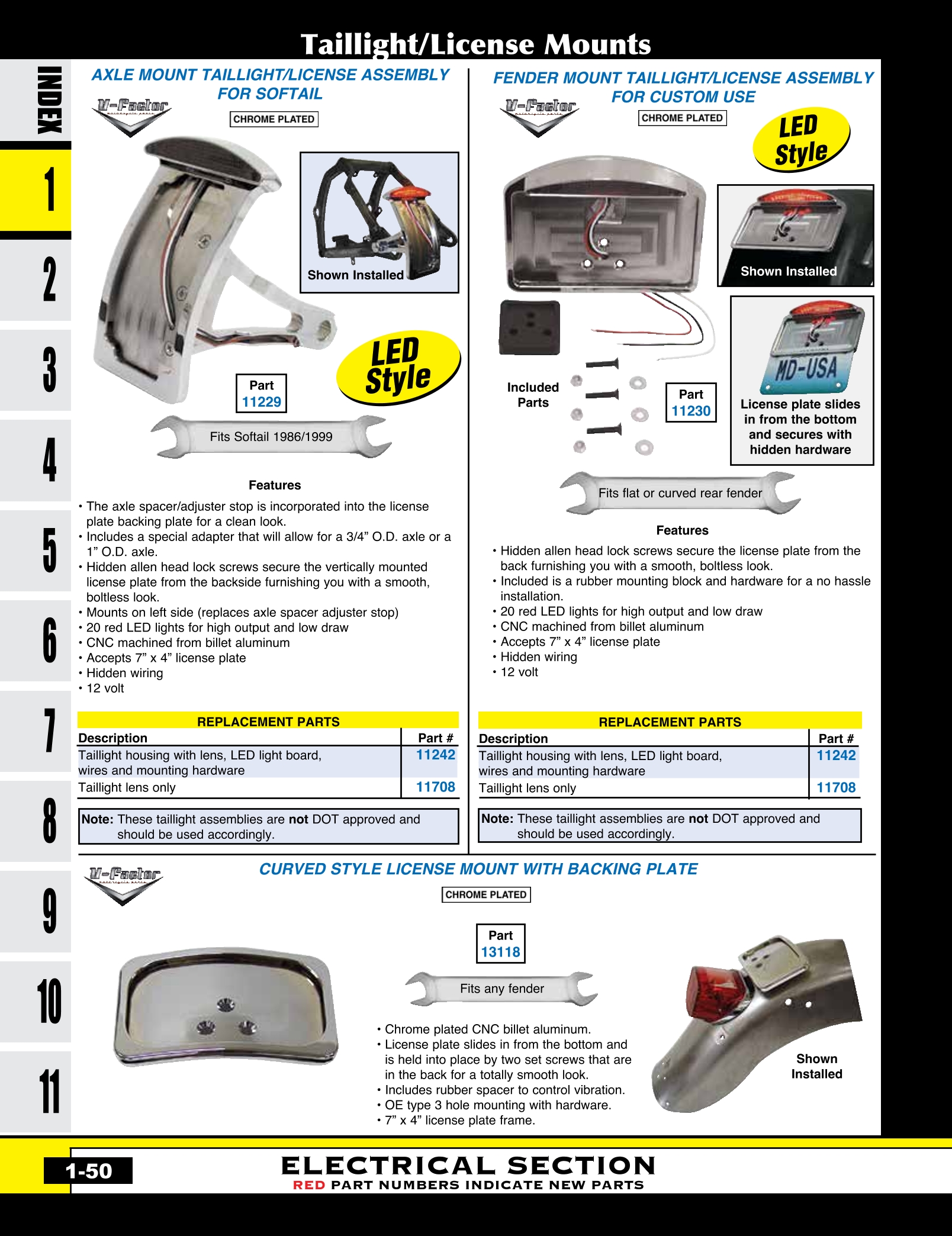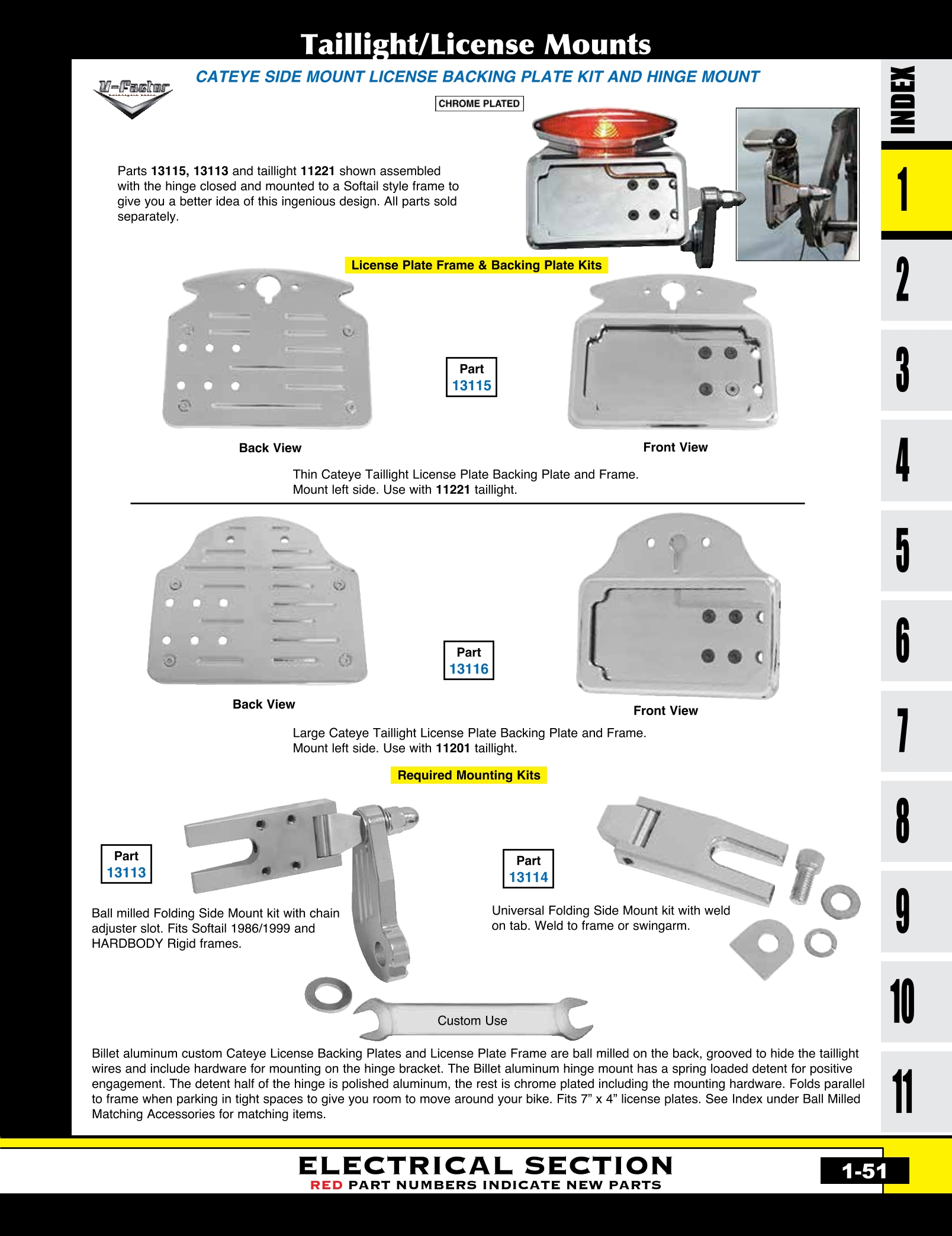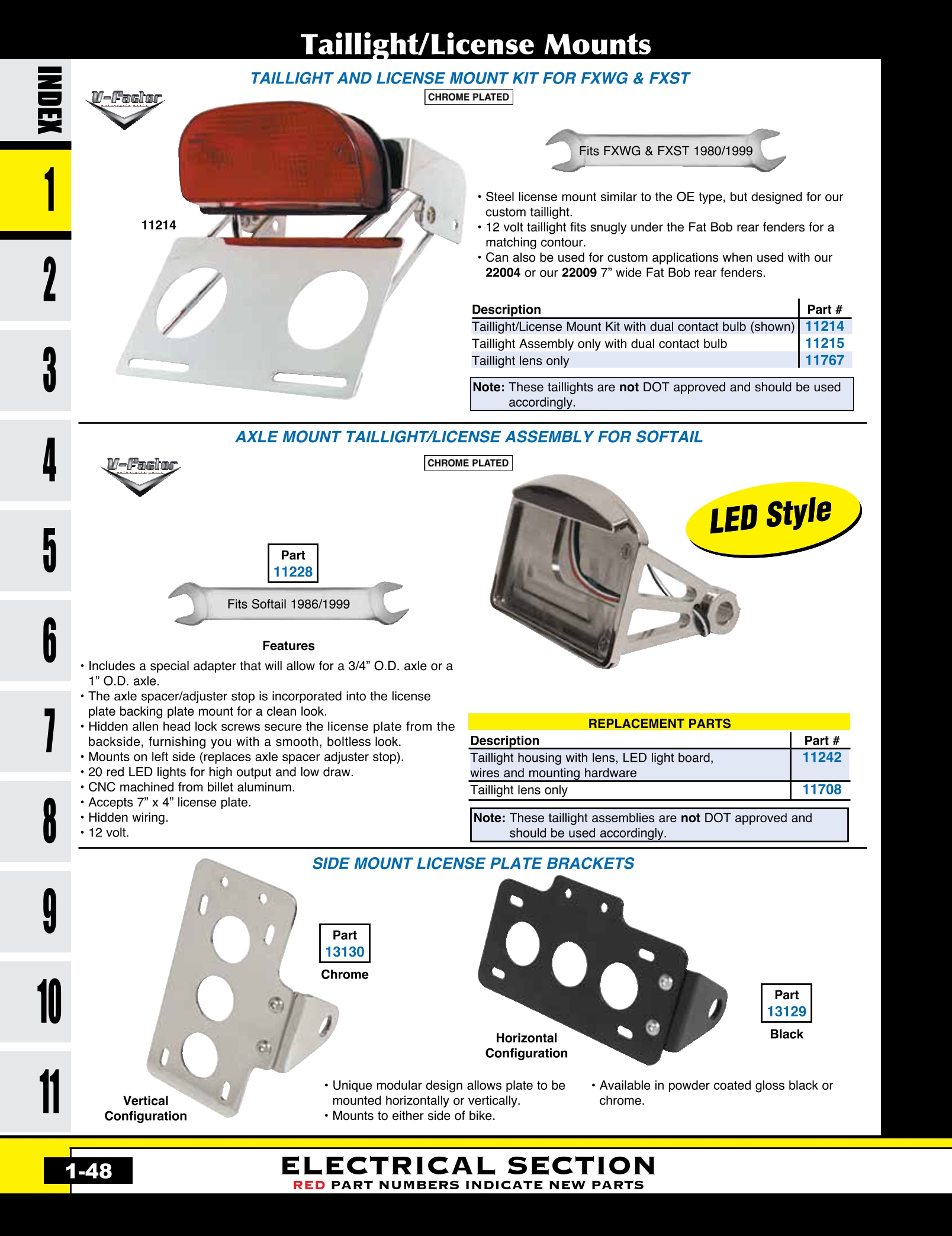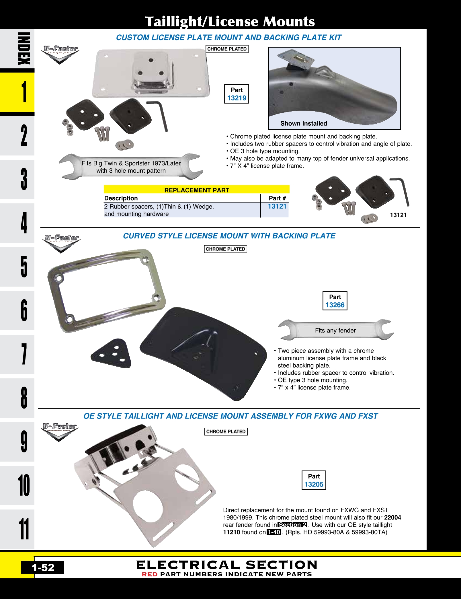 | MU-13107 | TAILLIGHT/LICENSE MT .090"TH FXWG,FXST 1980/1999 & CUS 7" FATBOB FDR STANDARD DUTY MT CP | EACH | $ 19.95 |
