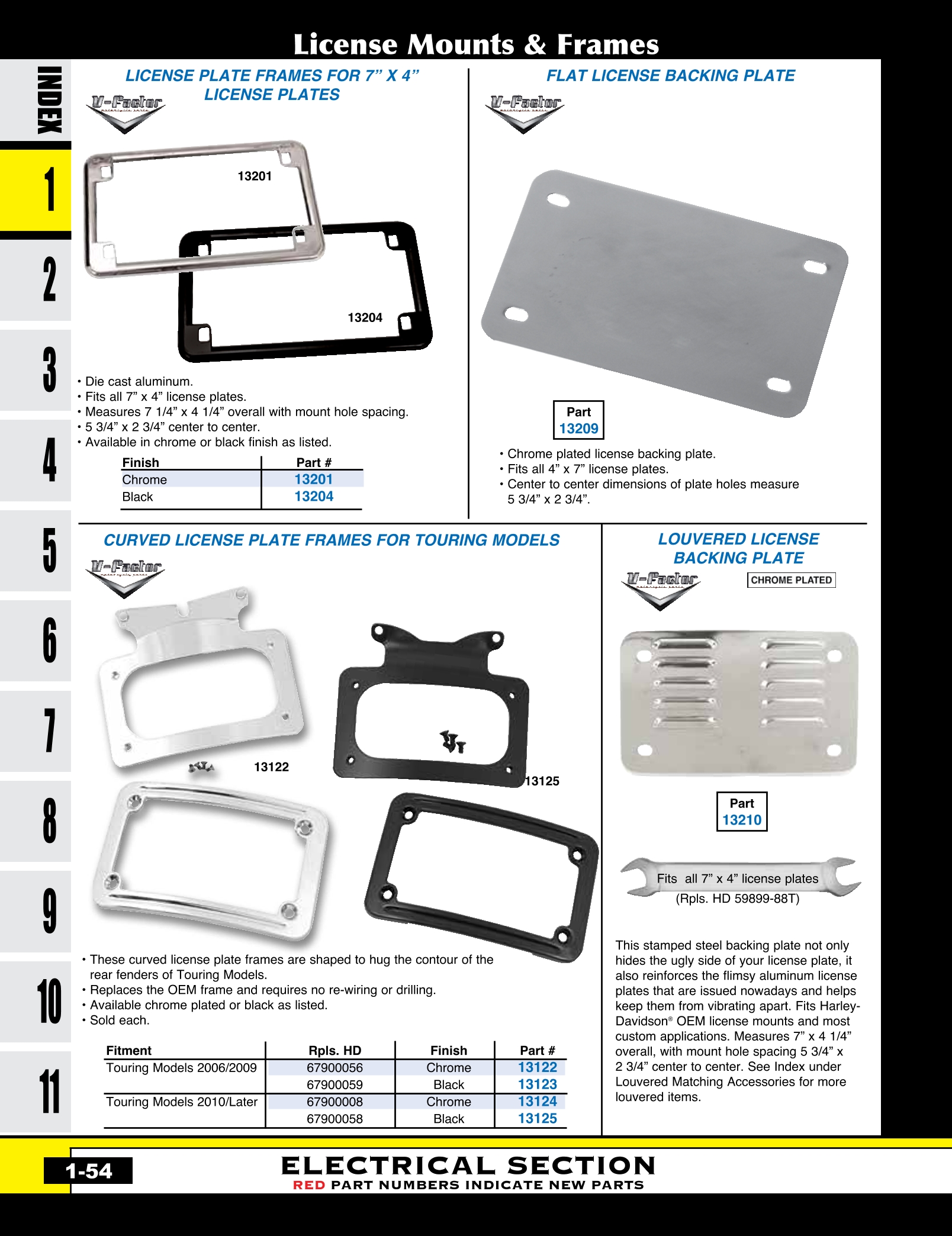 | MU-13210 | LICENSE BACKING PLATE,LOUVERED FITS ALL 4"X7" PLATES CHROMED STEEL REPLACES HD 59899-88T | EACH | $ 11.80 |