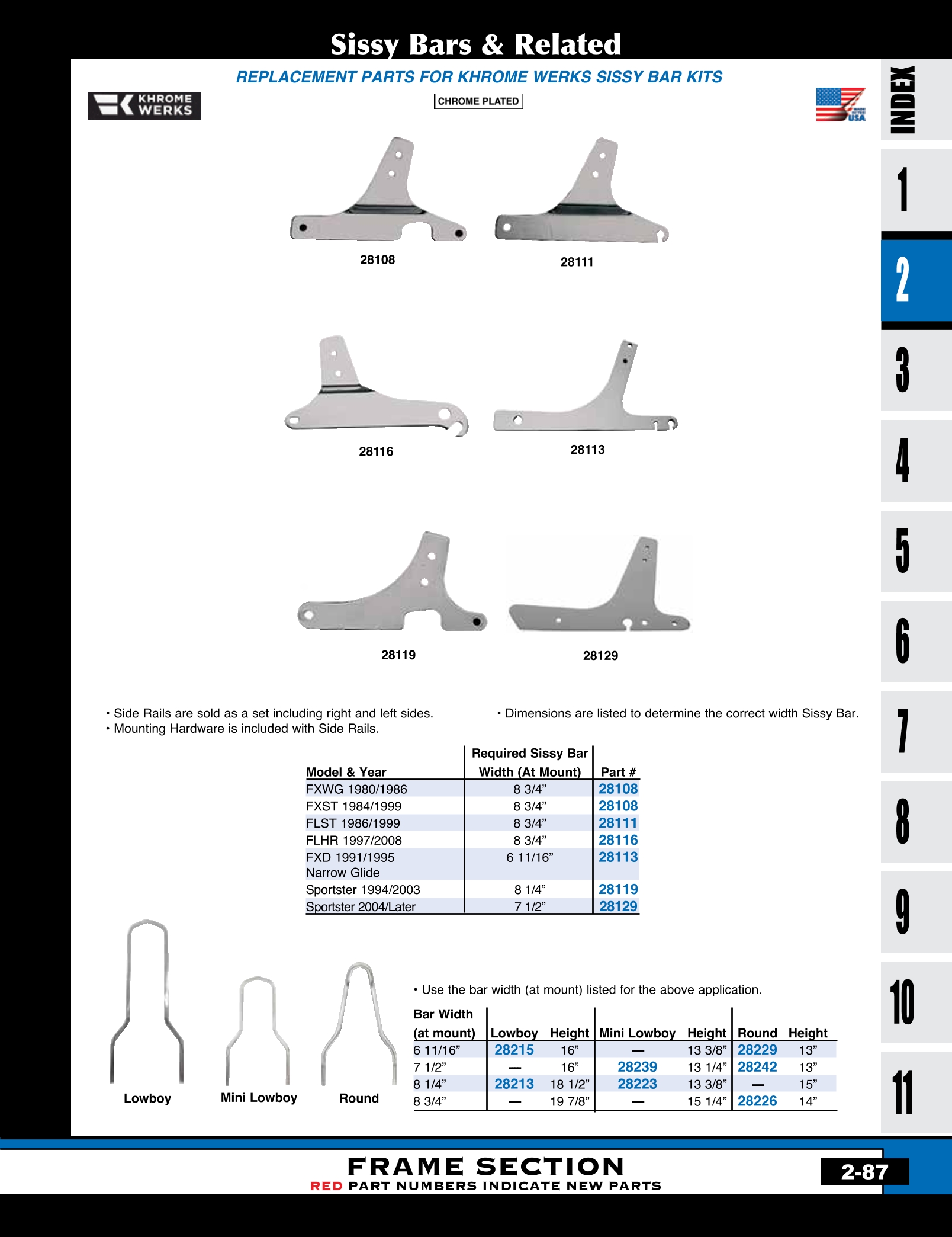 | MU-28116 | SISSY BAR SIDE RAILS,SWINGARM FLHR MODELS 1997/2008 SEE CATALOG FOR SISSY BARS | PAIR | 111.69 |