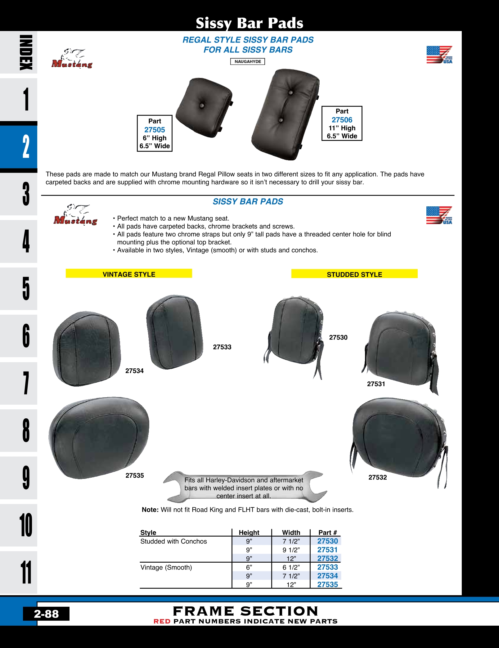| MU-27534 | SISSY BAR PAD,9" TALL, VINTAGE 7.5" WIDE MUSTANG #75634 | EACH | 84.99 |
