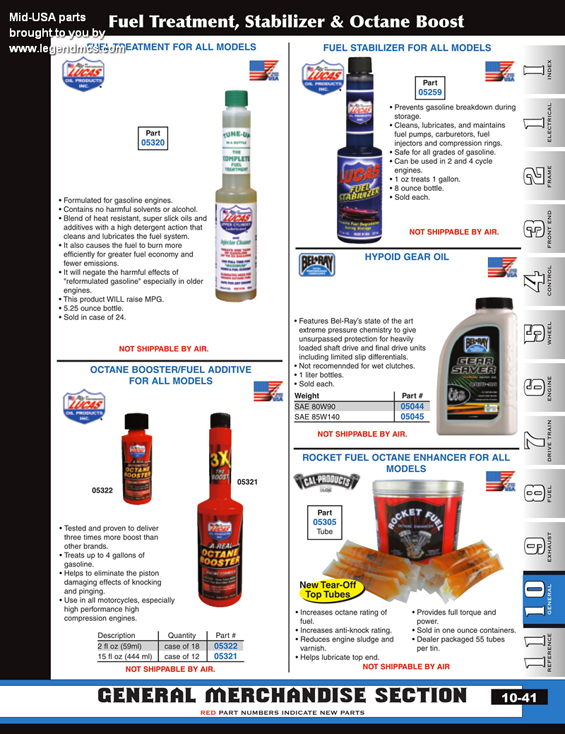 | MU-05259 | FUEL STABILIZER, PREVENTS FUEL BREAKDOWN DURING STORAGE 8 OZ. 1 OZ.TREATS 1 GAL. #10314 | 6.76 | 6.02 |
