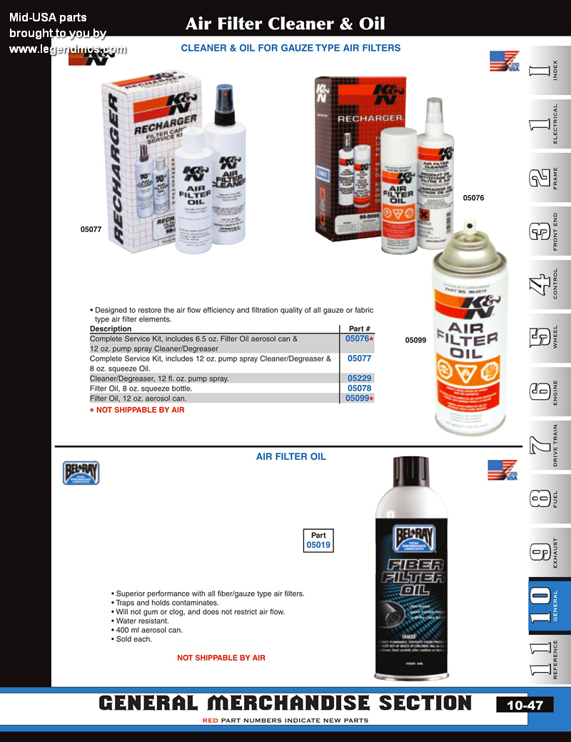 | MU-05077 | AIR FILTER OIL,RECHARGER KIT ALL FABRIC TYPE AIR FILTERS RESTORES LIKE NEW K&N.99-5050 | 14.97 | 12.87 |