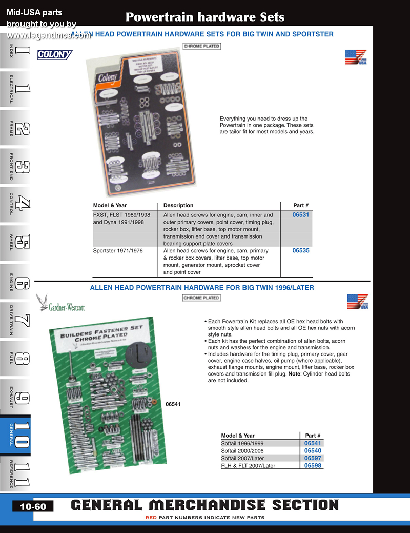 | MU-06535 | ALLEN HD POWERTRAIN HARDWARE SPORTSTER 1971/1976 CHROME PLATED COLONY #06535 | 86.87 | 72.97 |