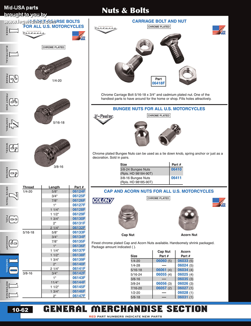 | MU-06946 | HARDWARE,ACORN NUT 3/8-24 UNF CHROME PLATED....PKG OF 10 "HARDWARE" ..3/8-24A | 21.56 | 16.38 |