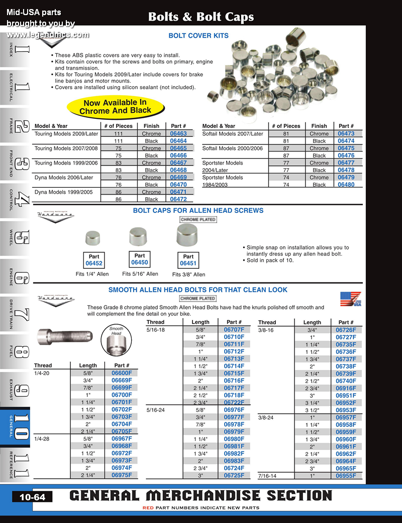 | MU-06480 | BOLT COVER KIT, BLACK SPORTSTER 1984/2003 BLACK, 74 PIECES | 34.72 | 30.01 |